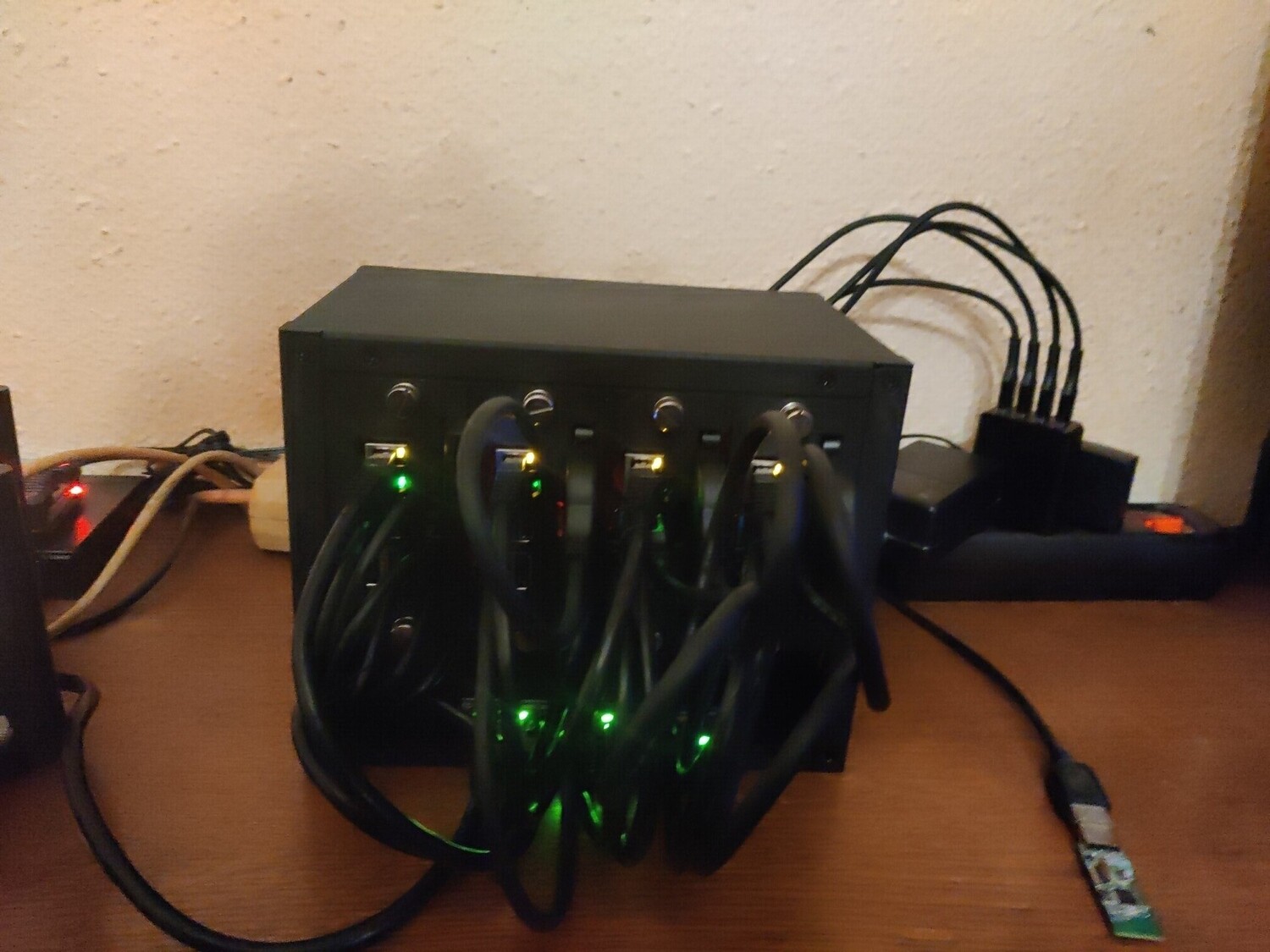 It's connected to an 6bay USB HDD case with 5x 4TB Seagate Ironwolf NAS HDDs set